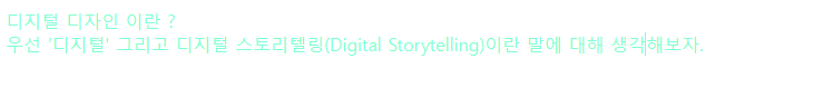 우선 '디지털' 그리고 디지털 스토리텔링(Digital Storytelling)이란 말에 대해 생각해보자.