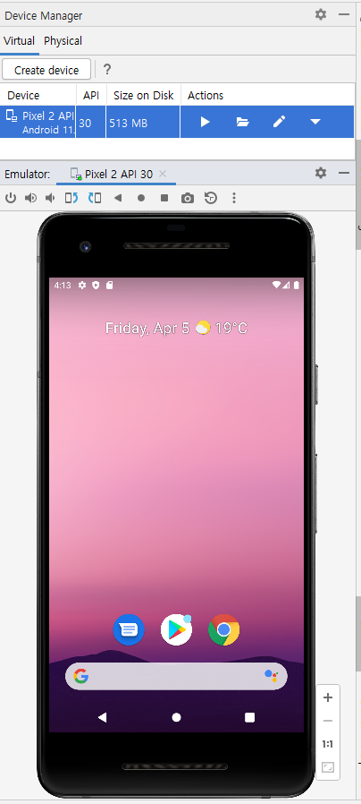- 에뮬레이터 실행 확인