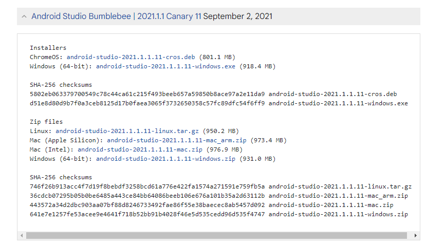 - https://developer.android.com/studio/archive?hl=en