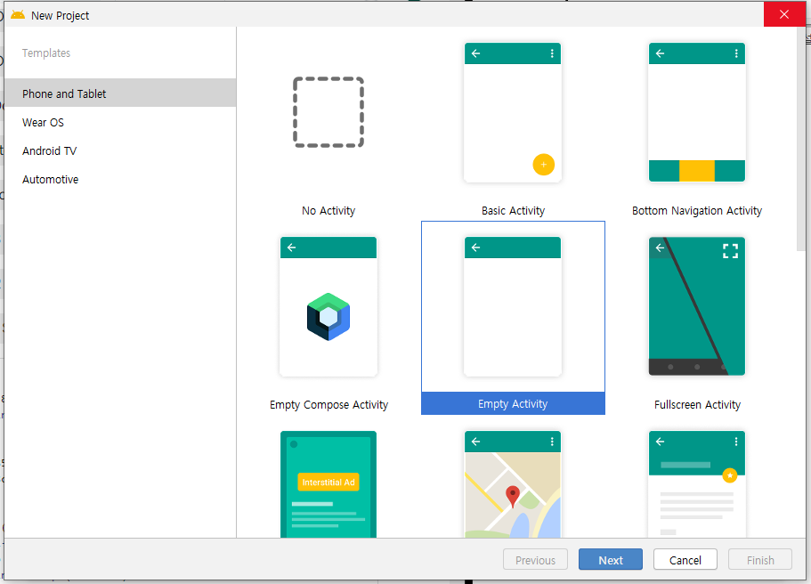 - New project > Empty Activity