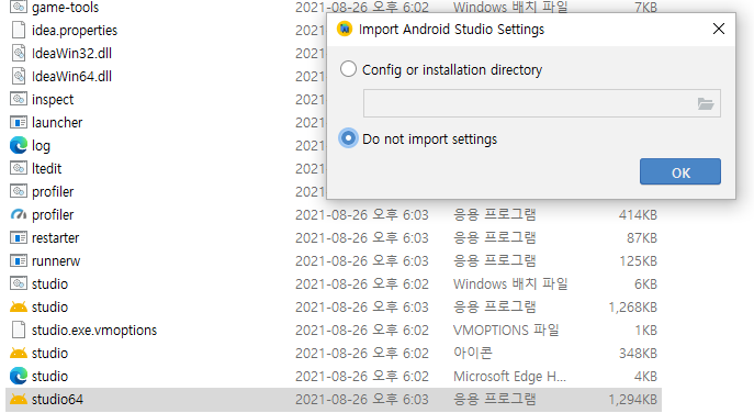 - bin/studio64 클릭