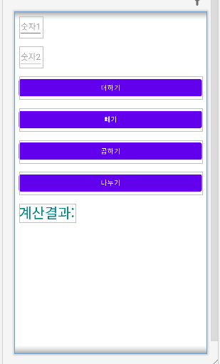 - 레이아웃 전체는 빨강, 버튼은 초록으로 지정