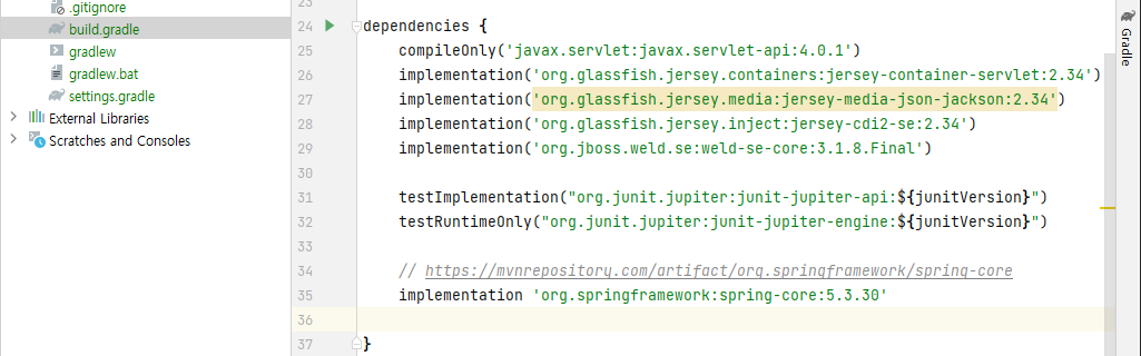 - 마찬가지로 복사 > 빌드 그래들 라이브러리 추가