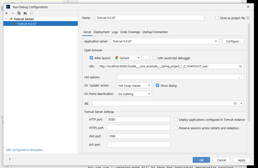 실행 페이지 나오는 지 확인.