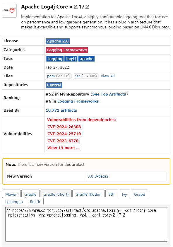 - https://mvnrepository.com/artifact/org.apache.logging.log4j/log4j-core