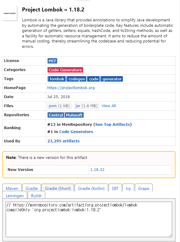 - https://mvnrepository.com/artifact/org.projectlombok/lombok