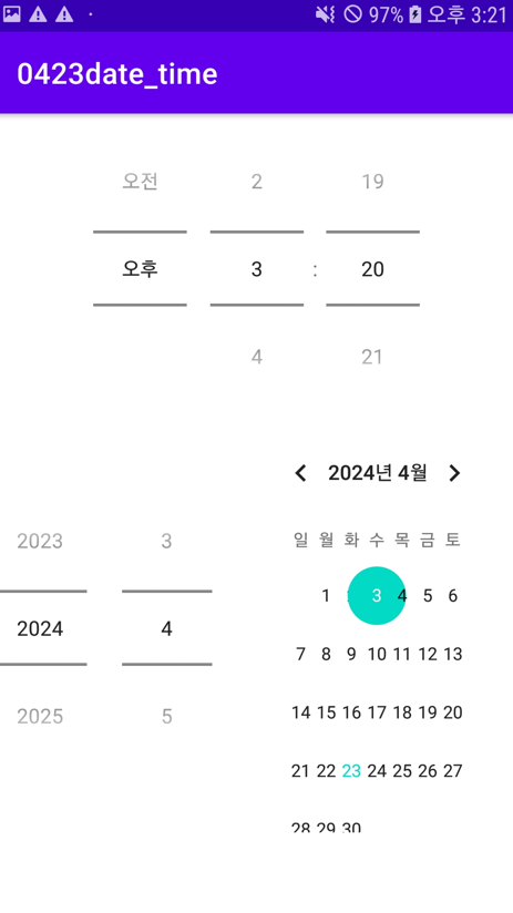 - 타임피커는 시간을, 데이트피커와 캘린더뷰는 날짜를 표시하고 조절하는 기능을 함