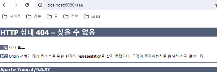 - web.xml에 throwExceptionIfNoHandlerFound 파라미터 추가