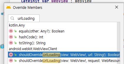 - 창에서 urlLoading 검색 후 > Boolean (더 짧은 메소드) 추가