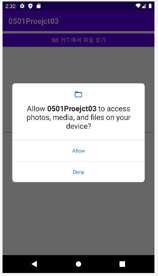 - Allow > SD 카드에서 파일 읽기