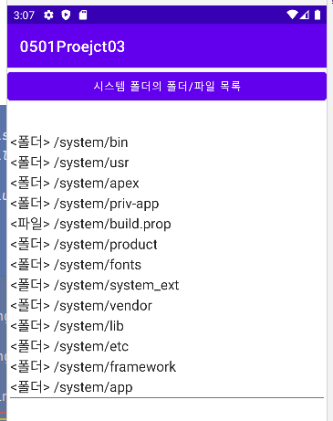 android:text="시스템 폴더의 폴더/파일 목록"/>