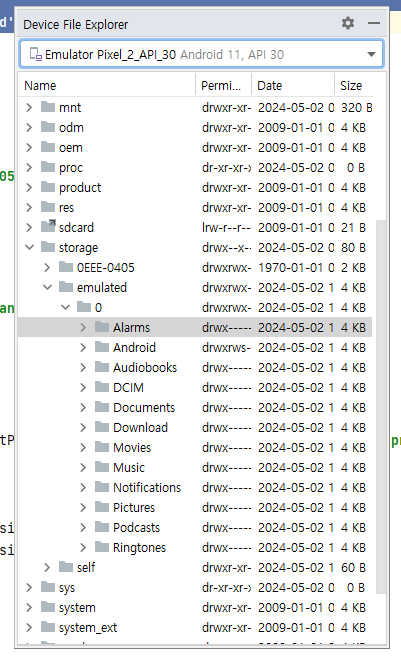 - Device File Explorer를 통해 SD카드 파일 읽기 가능