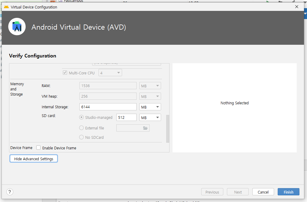 - Show Advanced Settings 클릭 > SD카드 용량 있는 지 확인