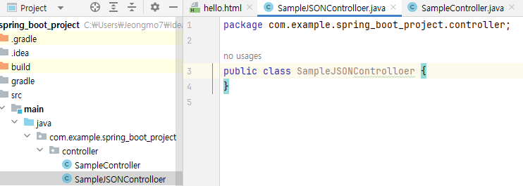 - 메인 파일있는 위치에 controller 패키지 생성 후 파일 생성
