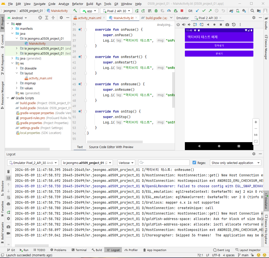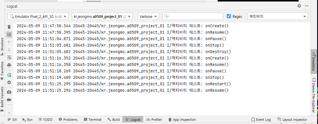 Android (액티비티 생명주기, 로그캣, 액티비티 테스트, 안드로이드 4대 구성요소, 디자인탭 활용, 액티비티와 프래그먼트) 본문