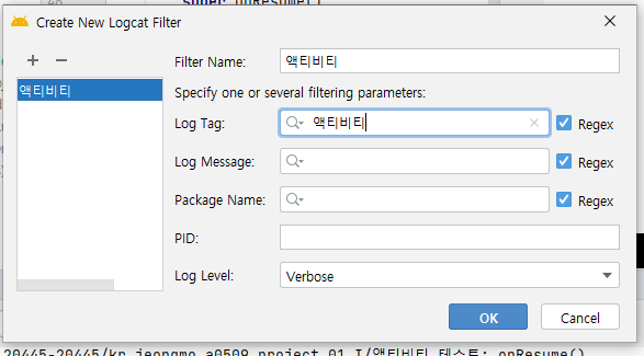 - Log.v : 상세한 기록을 남기기 위한 로그