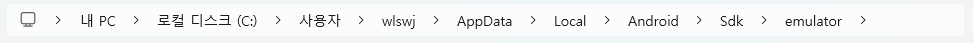 - emulator 폴더가 있는 경로를 파악해준 뒤 (보통 Sdk 폴더 안에 있습니다)