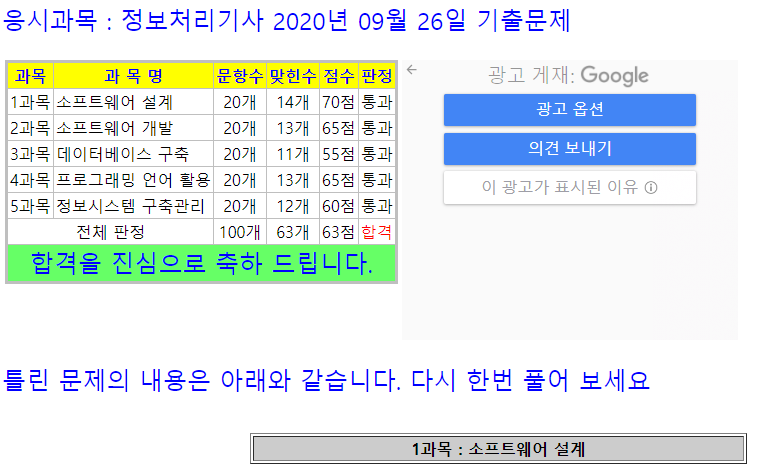 기출 문제 공부를 제공해주는 COMCBT 감사합니다.