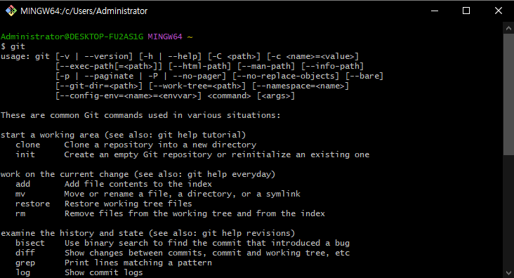 4. git 입력 > 사진처럼 명령어 나오면 설치 완료