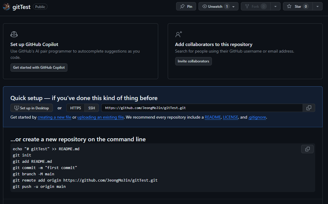 - Descroption : 저장소 설명 (필수 아님)