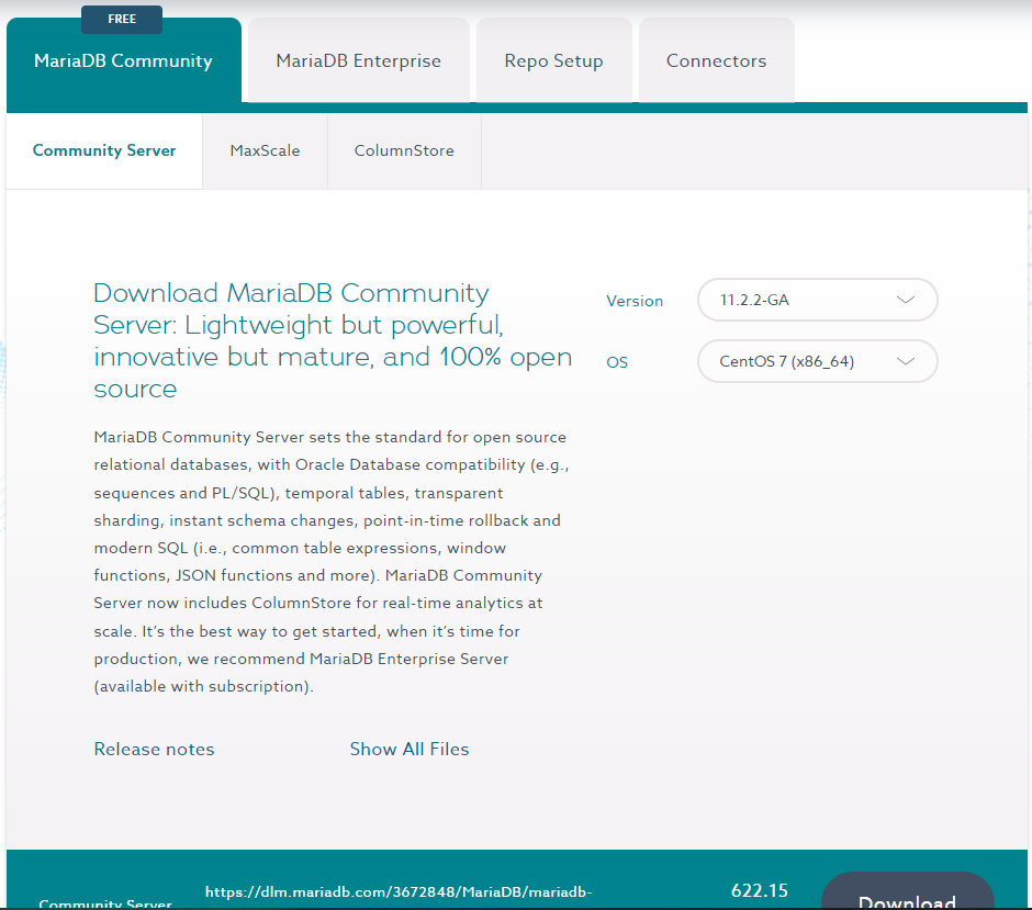 1. PRODUCTS > Community Edition > MariaDB Community Server > Download 클릭