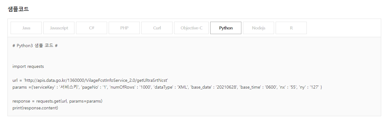 parameter = f'?serviceKey={service_key}&base_date={base_date}&base_time={base_time}&nx={nx}&ny={ny}&dataType={data_type}'