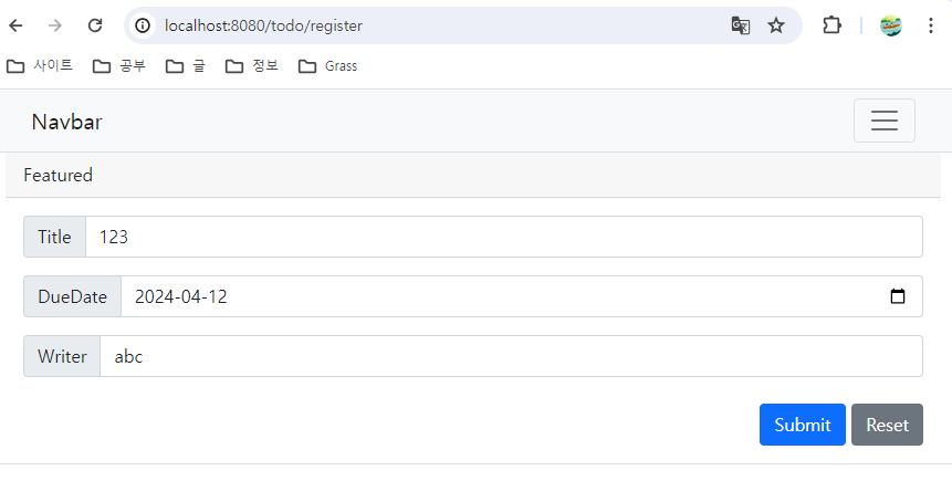 - 서버 재실행 후 DB에 저장되는 지 확인하기 위해 작성 후 Submit