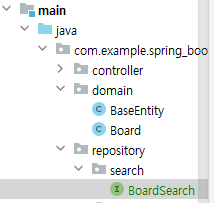 - repository 패키지에 serach 폴더 생성 > BoardSearch 인터페이스 파일 생성