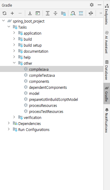 - 우측 Gradle 탭에서 compilejava 파일 찾기